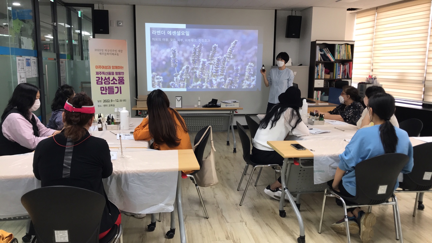 »ç ¾÷ ¸í : ÀÌÁÖ¿©¼º ´ë»ó Á¦ÁÖÆ¯»êǰÀ» Ȱ¿ëÇÑ °¨¼º¼Òǰ ¸¸µé±â »ç¾÷±â°£ : 9¿ù 22ÀÏ(¸ñ)~10¿ù 20ÀÏ(¸ñ) ¸ÅÁÖ ¸ñ 13:30~15:30 ¿î¿µÀå¼Ò : ¼¾ÅÍ ±³À°½Ç ´ë»ó ¹× Àοø : ¿Ü±¹ÀÎÁֹΠ11¸í