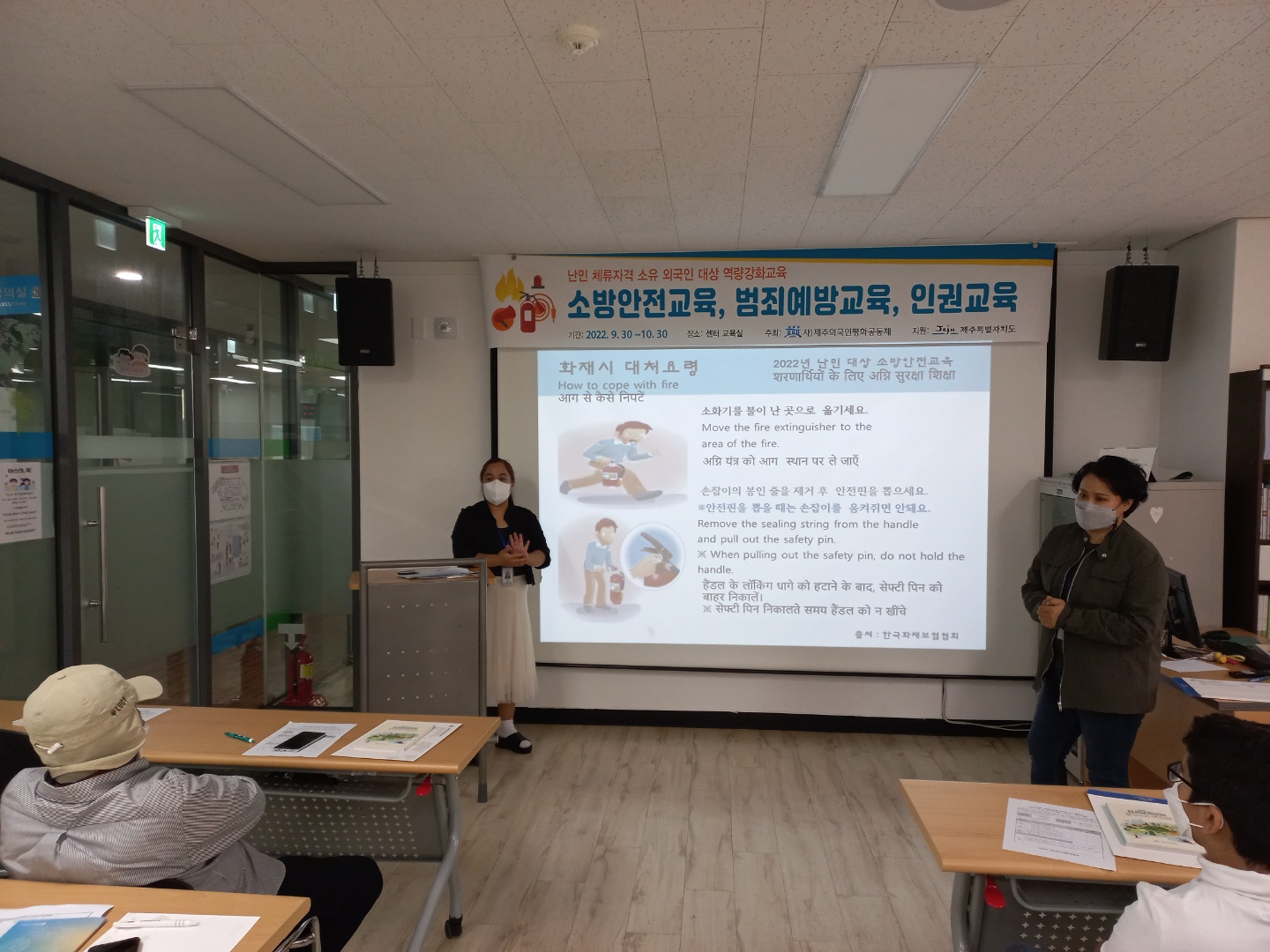 ³¹Î ü·ùÀÚ°Ü ¼ÒÀ¯ ¿Ü±¹ÀÎ ´ë»ó ¼Ò¹æ¾ÈÀü±³À° ½Ç½Ã ÀϽà : 9¿ù 30ÀÏ(±Ý) 16:00~17:00 Àå¼Ò : ¼¾ÅÍ ±³À°½Ç Âü¿©Àοø : 3°³±¹ 9¸í ³»¿ë : 119½Å°í¿ä·É, ÈÀç½Ã ´ëÇÇ¿ä·É, ¼Òȱ⠻ç¿ë¹ý ¾È³» »çÁø :