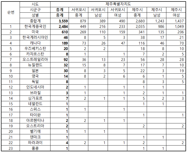 | Á¦¸ñ | Á¦ÁÖÁö¿ª °ÅÁÖ ¿Ü±¹±¹Àûµ¿Æ÷ °Å¼Ò½Å°í ÇöȲ(2025³â 6¿ù 30ÀÏ ±âÁØ) | ||